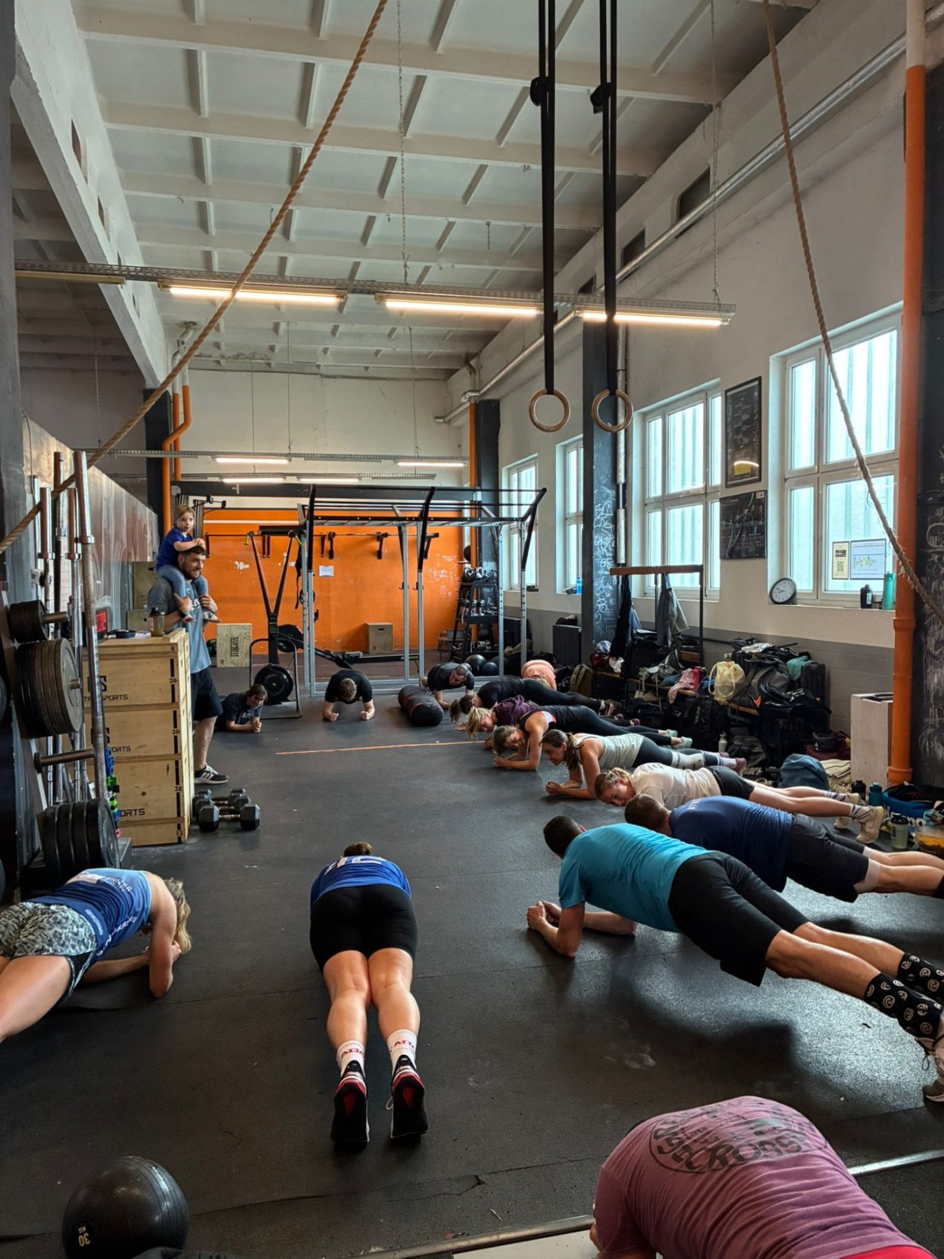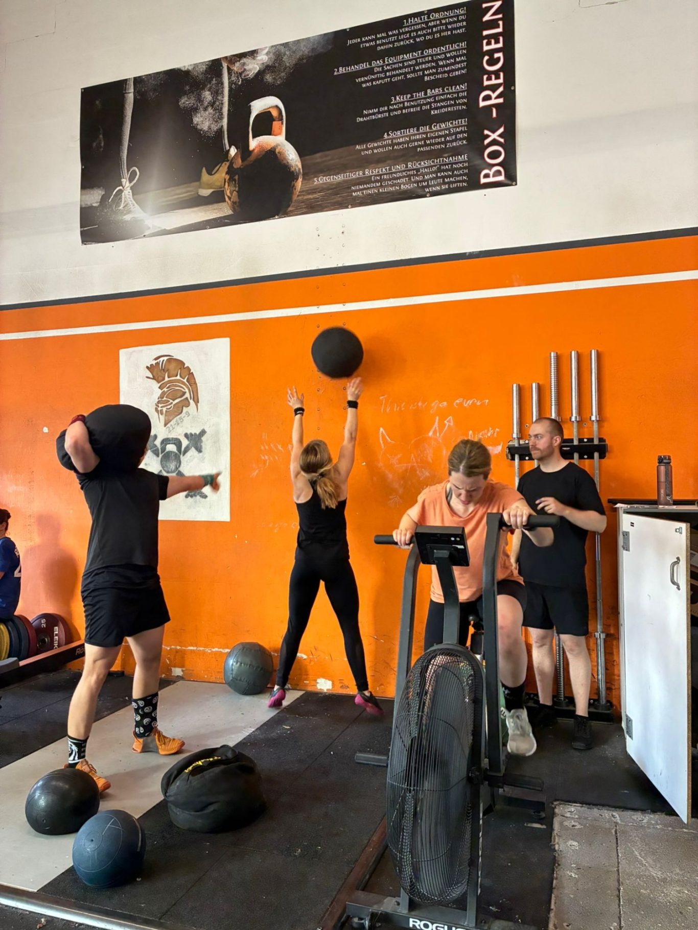 Sowohl der Kraftteil, als auch das Workout, wurden erst vor Ort zusammengestellt, indem die Mitglieder „Schrottwichtel“-Übungen zogen und daraus live ein Workout bastelten.