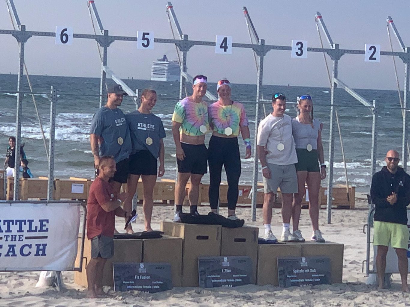 Vom 23. bis 25. August 2024 nahmen drei unserer Teams bei "Battle the Beach" - einem dreitägigen Wettkampf am Strand und im Wasser - teil und traten in mehreren Einzel-Workouts gegen andere Zweierteams an. Lena und Maurice starteten als Team „1,75er“ in der Kategorie Intermediate Mixed, Lisa und Steffi als „IT Girls in the WOD“ in der Kategorie Scaled Women, und Stephan und Ronnie als „Popeyes im Spinatrausch“ in der Kategorie Scaled Men.